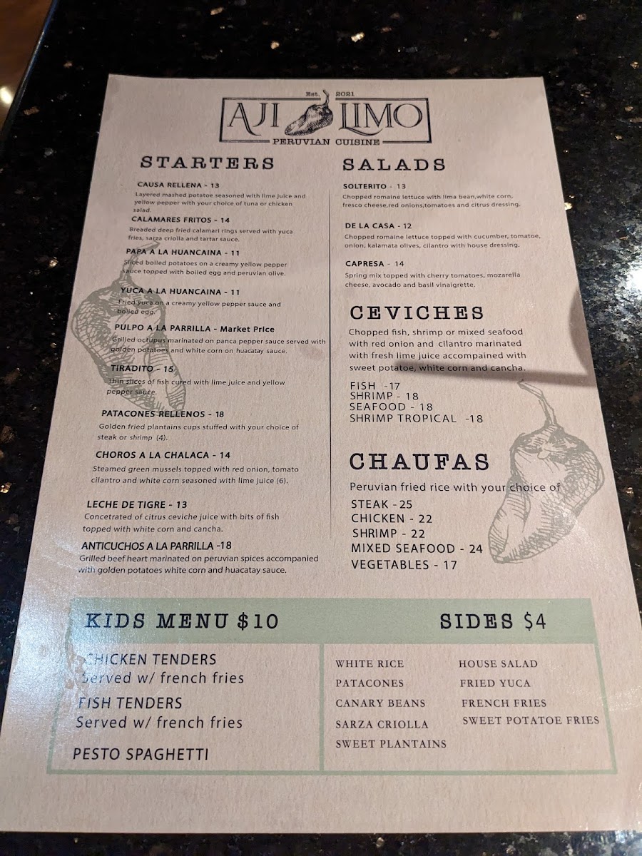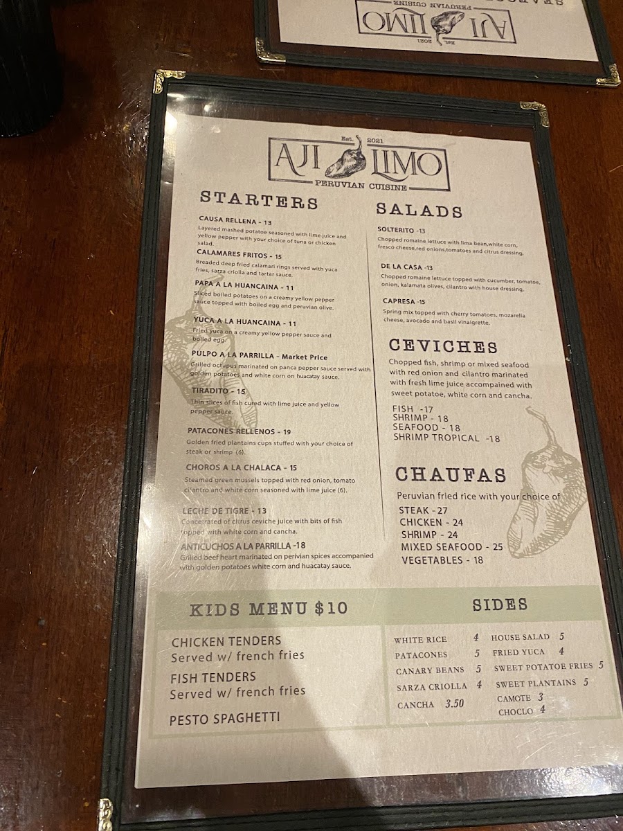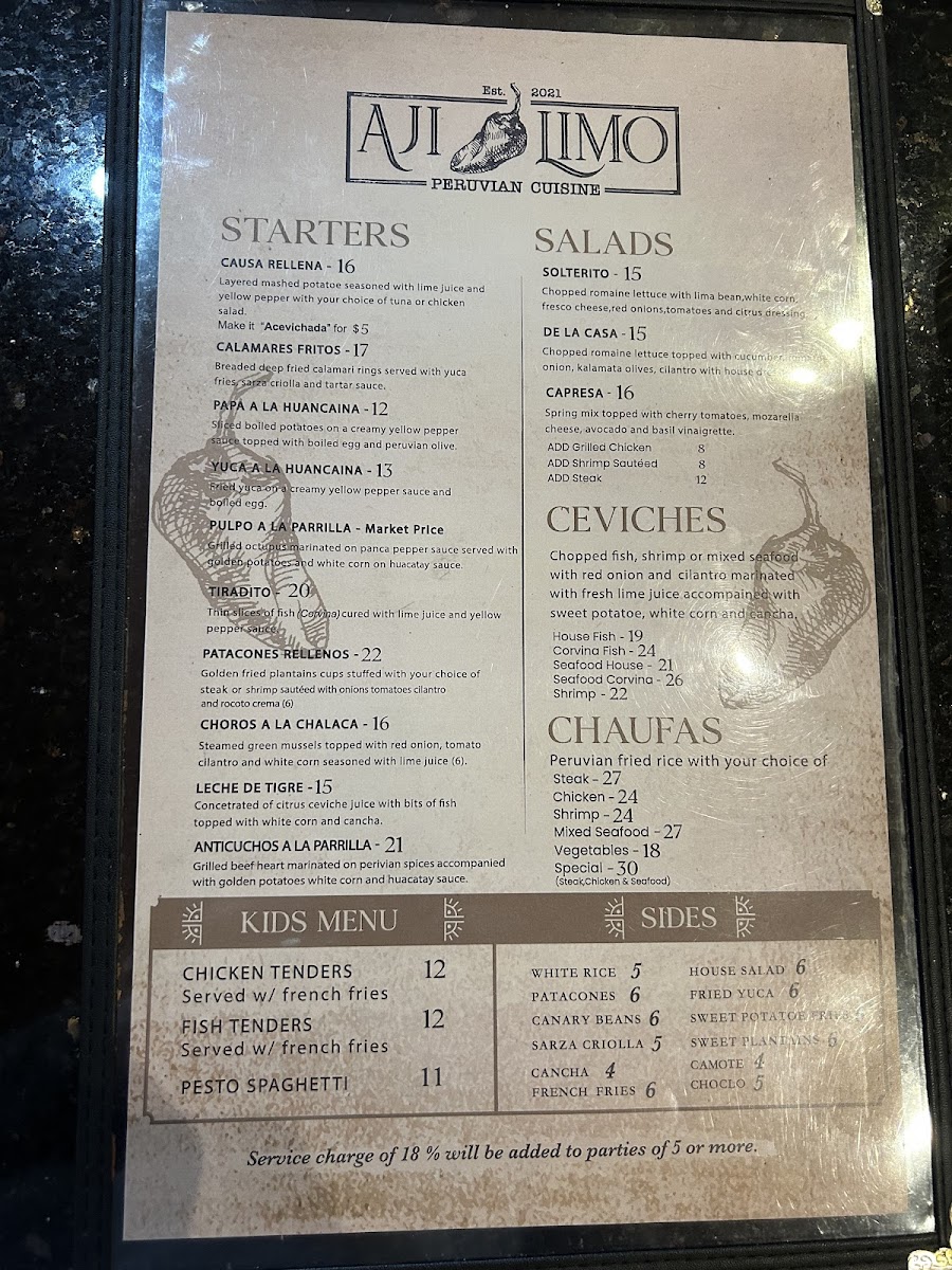 Welcome to Aji Limo Peruvian Cuisine, a culinary gem located in Tampa, FL, where vibrant flavors and authentic experiences come alive. The menu is a delightful exploration of Peru's rich gastronomic heritage, featuring dishes crafted with love and fresh ingredients.